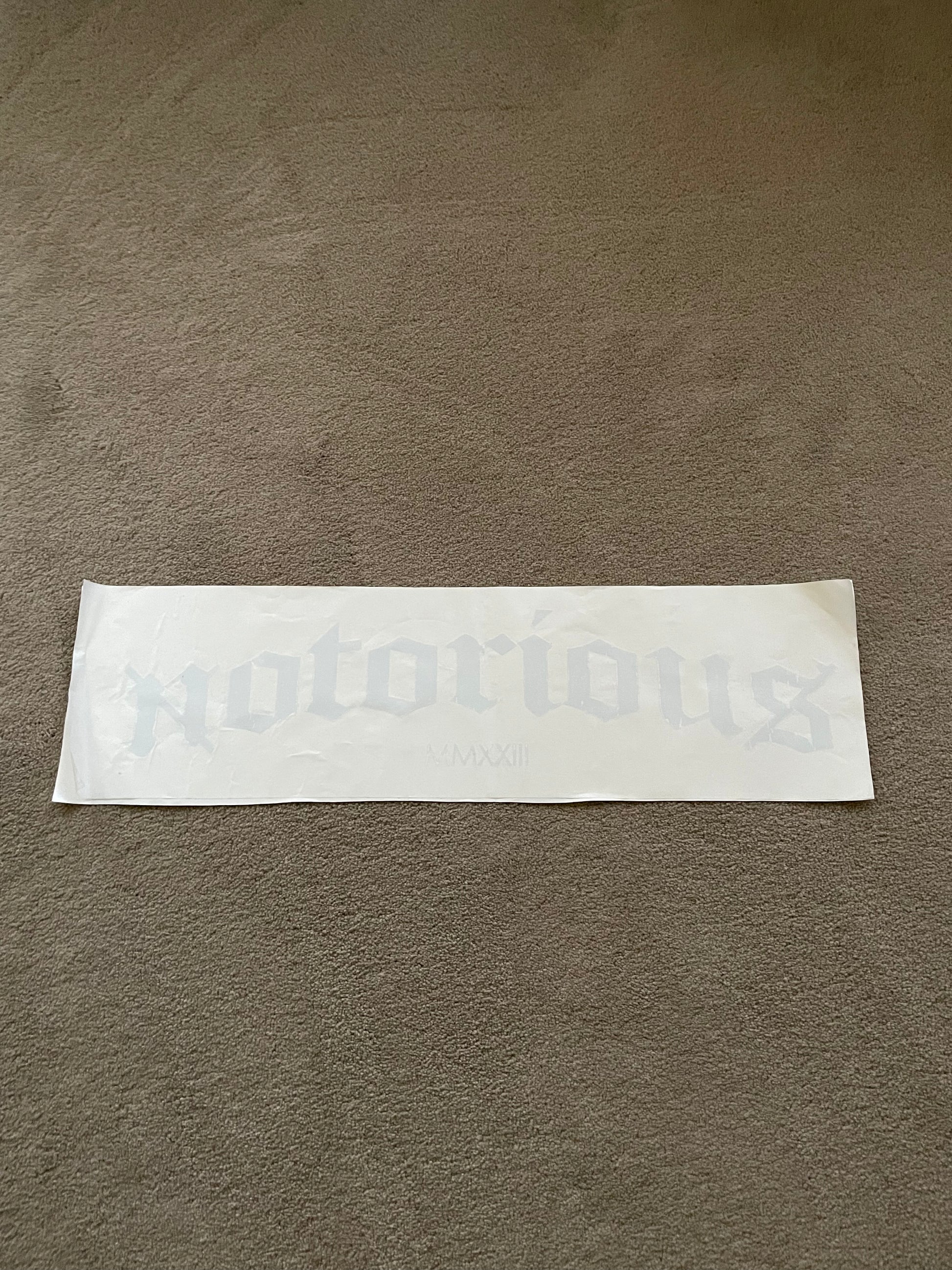 A large, cut-vinyl, text sticker that fits perfectly on your front windscreen, rear window, or any medium size surface area.